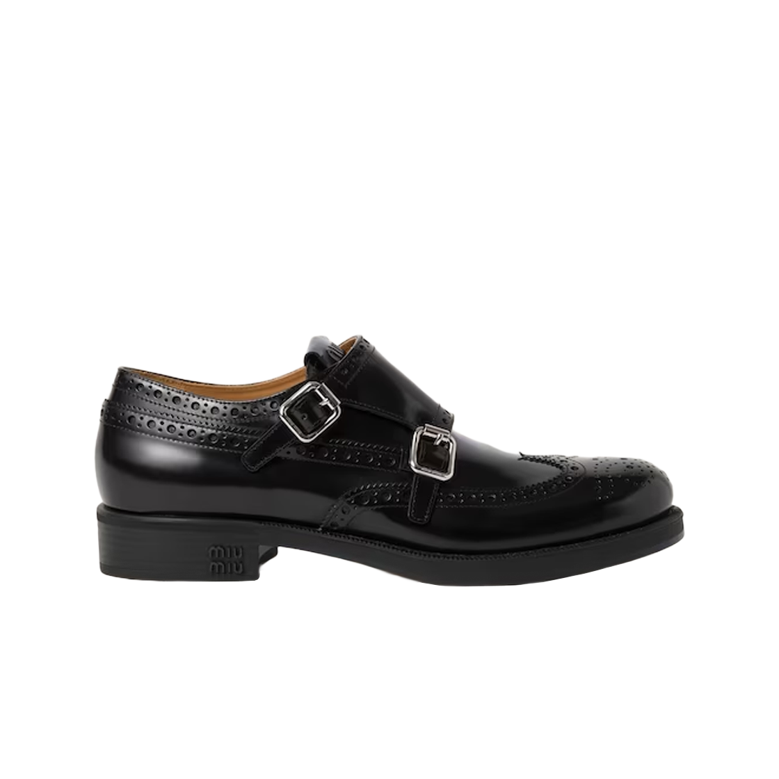 (W) 처치스 x 미우미우 브러쉬드 레더 더블 몽크 브로그 슈즈 블랙