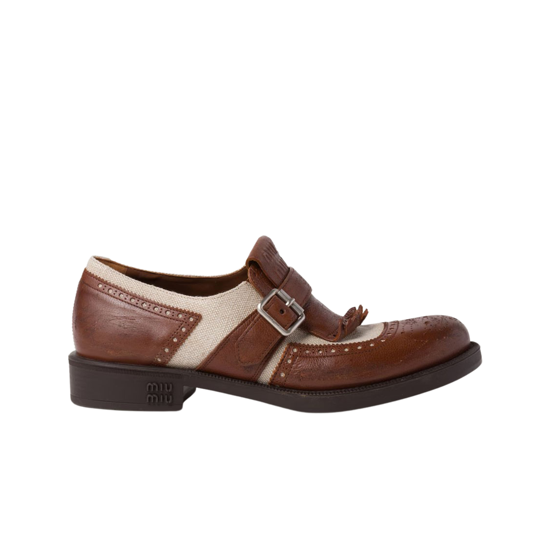 (W) 미우 미우 x 처치스 상하이 레더 린넨 슈즈 월넛 브라운 코드