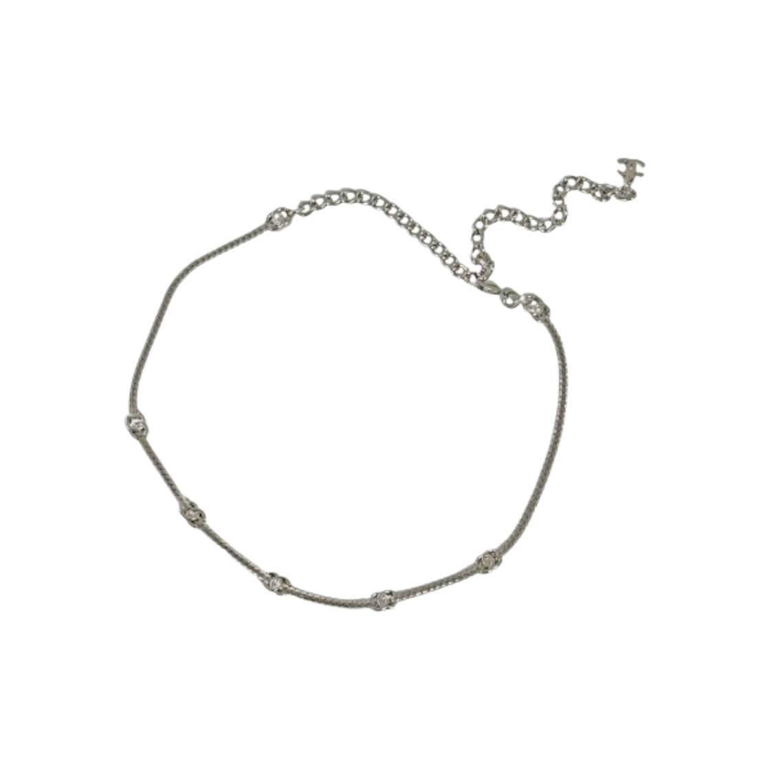 넘버링 #7780 플랫 닷 초커 네크리스 실버