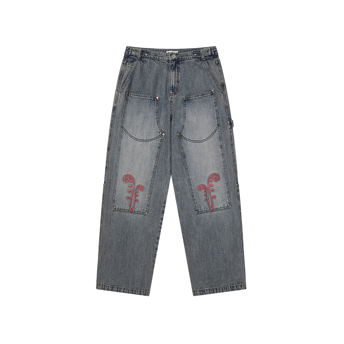 카락터 프테리 더블 니 데님 팬츠 워시드 블루