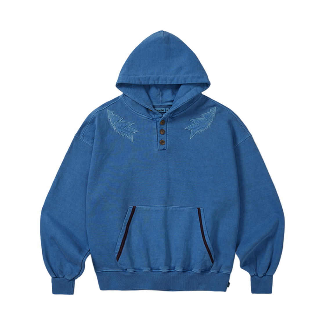 카락터 가먼트 다이드 버튼 후디 피그먼트 블루