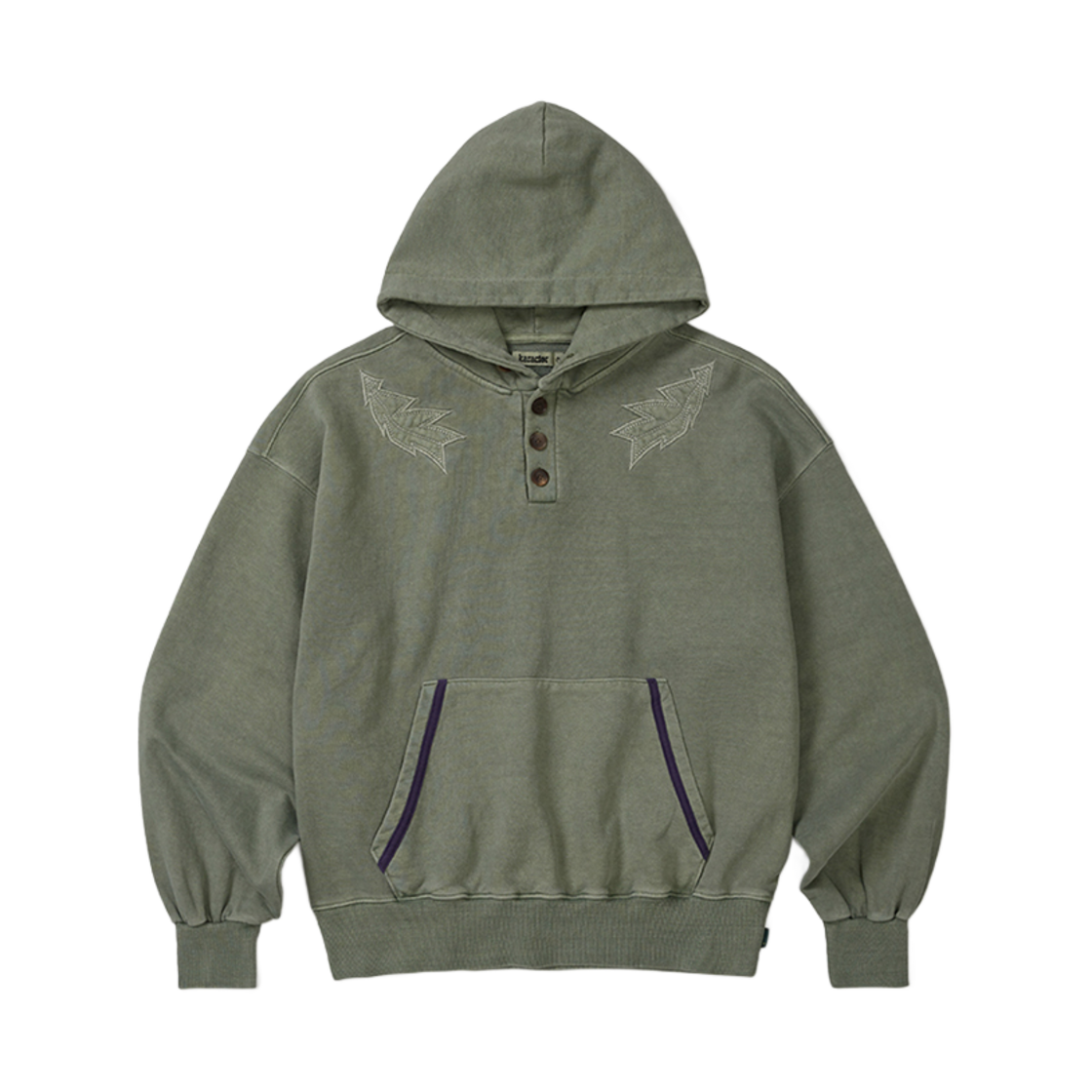 카락터 가먼트 다이드 버튼 후디 피그먼트 그린