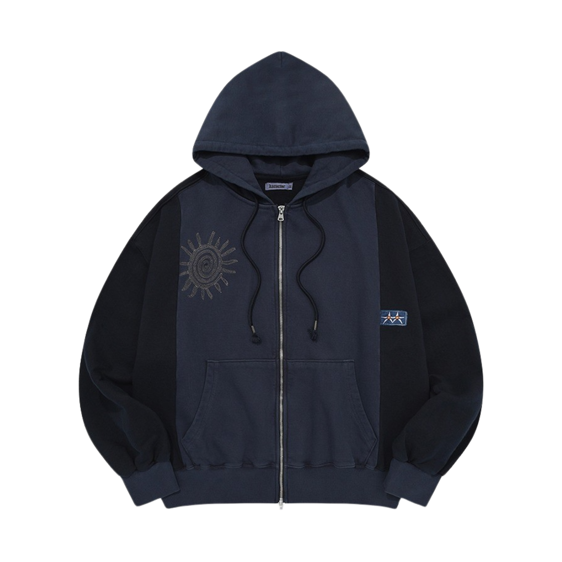 카락터 가먼트 다이드 후드 집업 피그먼트 네이비