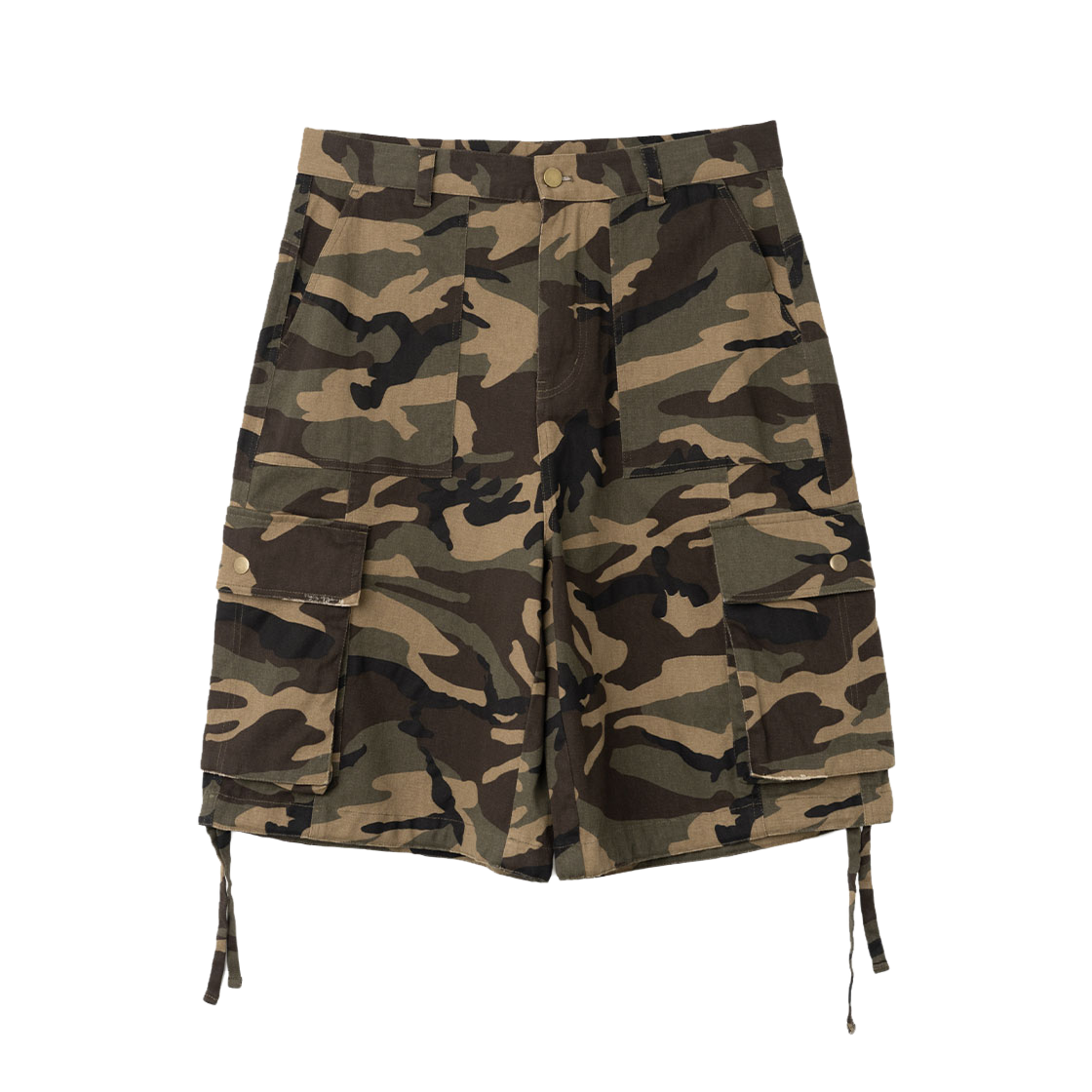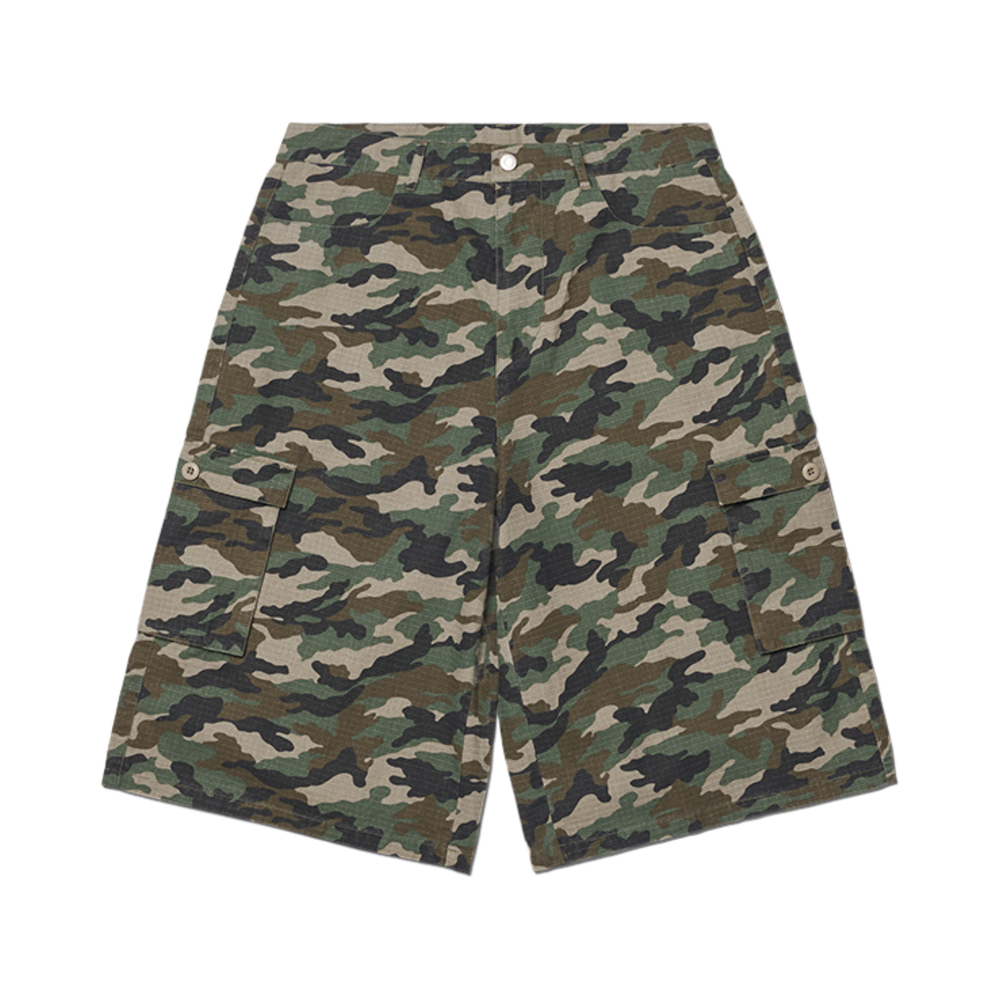 낫노잉 폴디드 로라이즈 멀티 카고 버뮤다 팬츠 카모