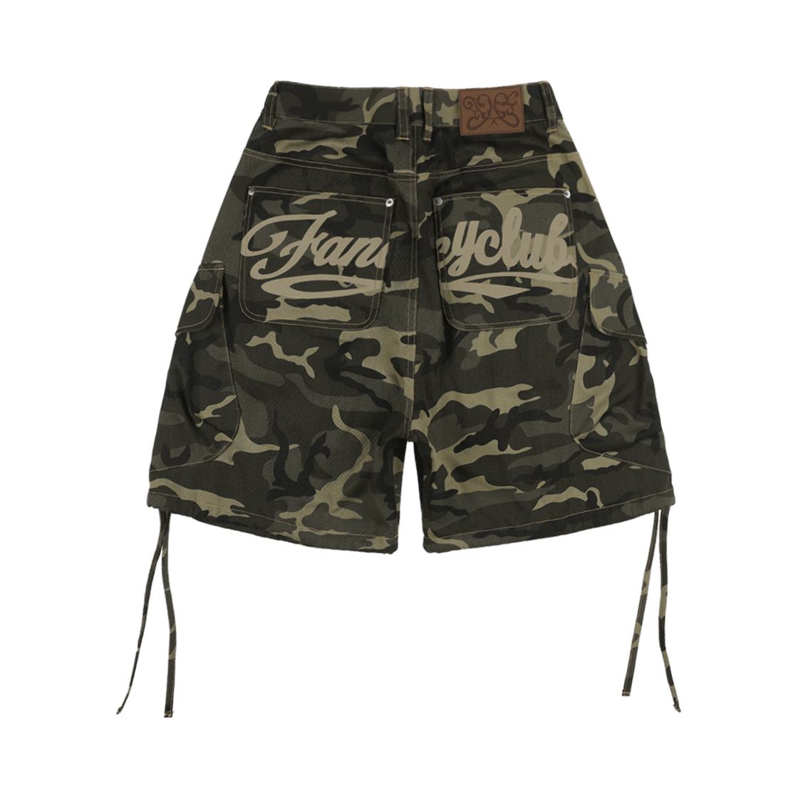팬시클럽 카고 레터링 버뮤다 팬츠 카키 카모
