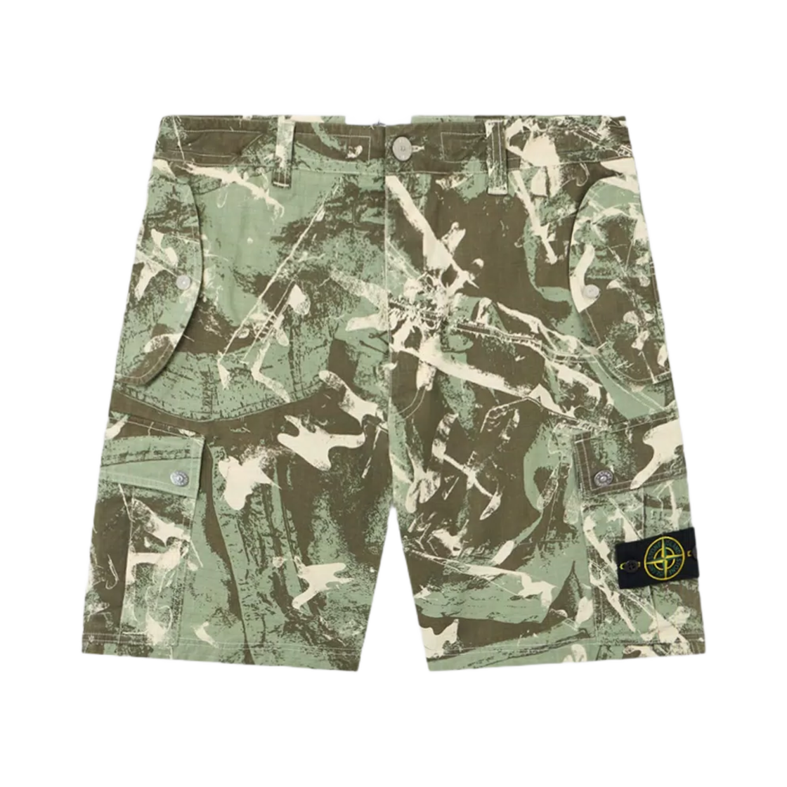 스톤 아일랜드 L100004 스캔 카모 온 스트레치 립스탑-OVD 컴포트 핏 카고 버뮤다 쇼츠 카모플라주 프린트 밀리터리 그린 - 25SS