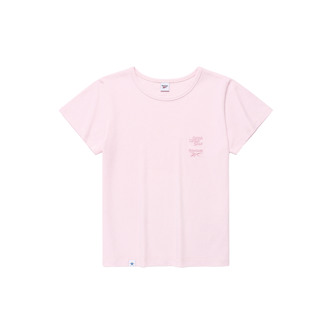 [트리플적립] 카비시 x 리복 W 더블 로고 EMB 숏 슬리브 티셔츠 핑크