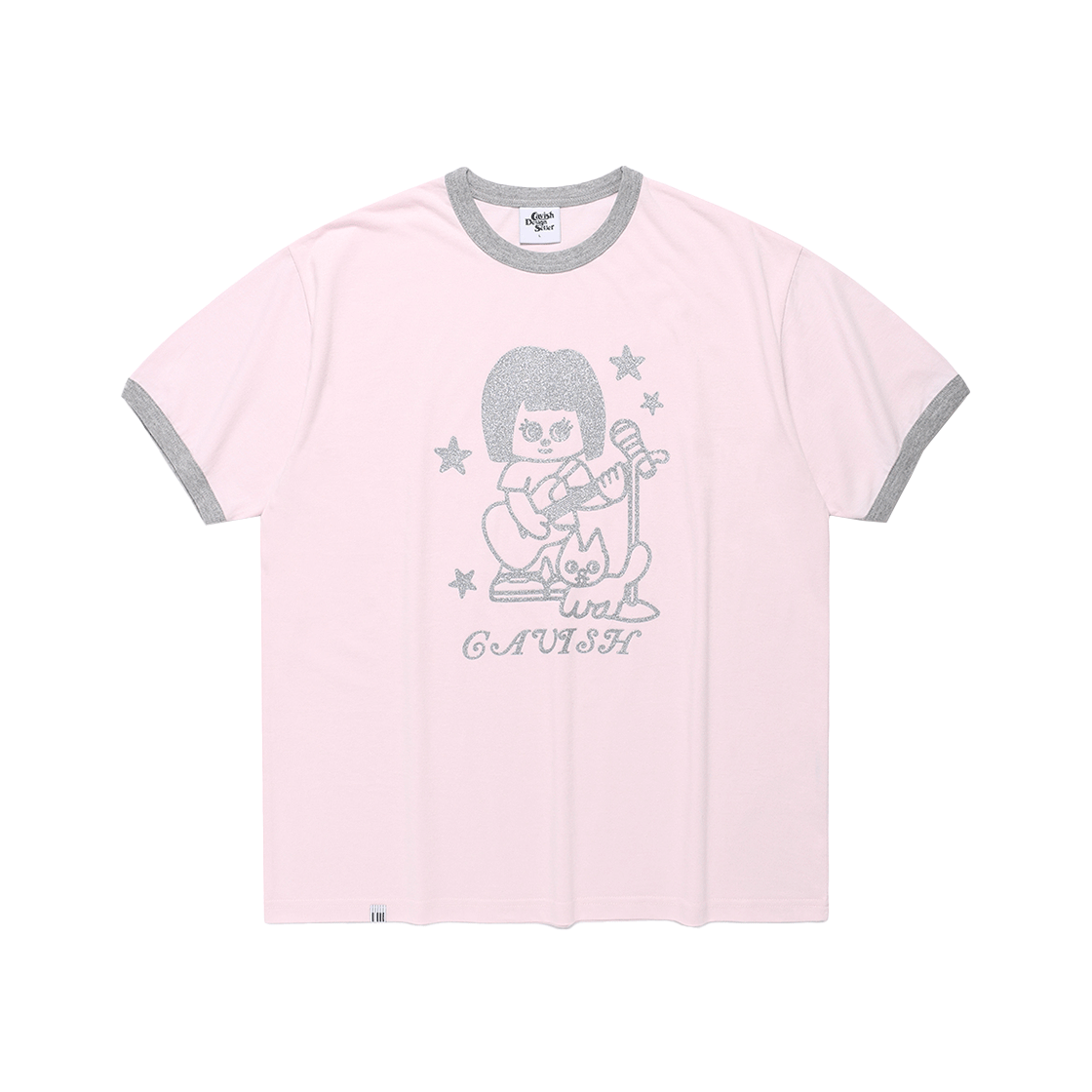 [트리플적립] 카비시 x 렐보브라운 글리터 링거 숏슬리브 티셔츠 핑크