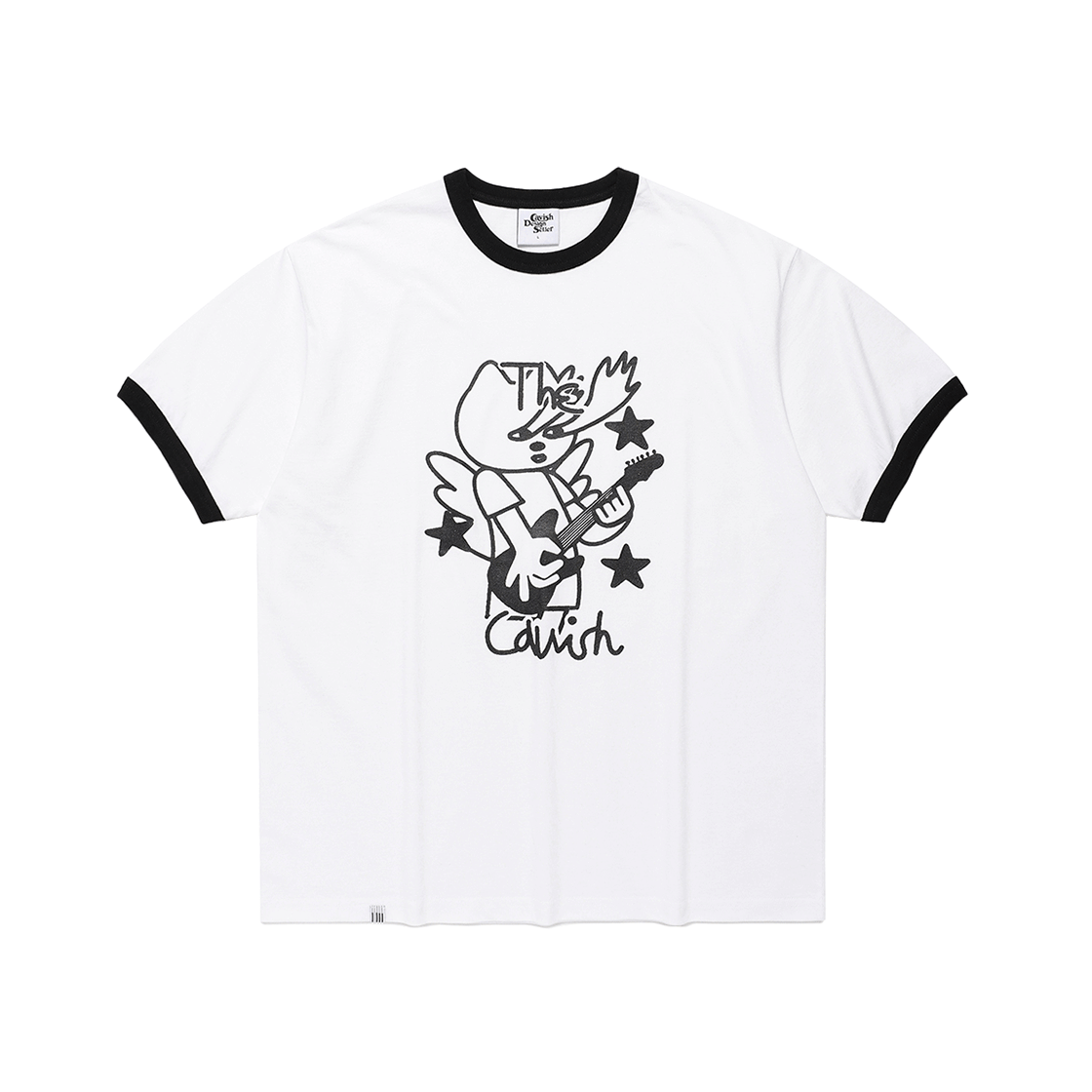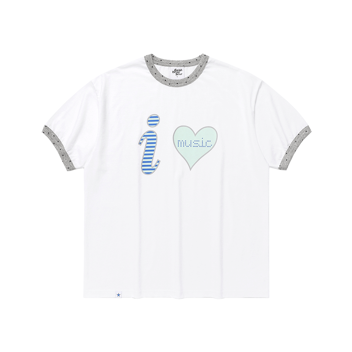 [트리플적립] 카비시 아이 러브 뮤직 링거 숏슬리브 티셔츠 화이트