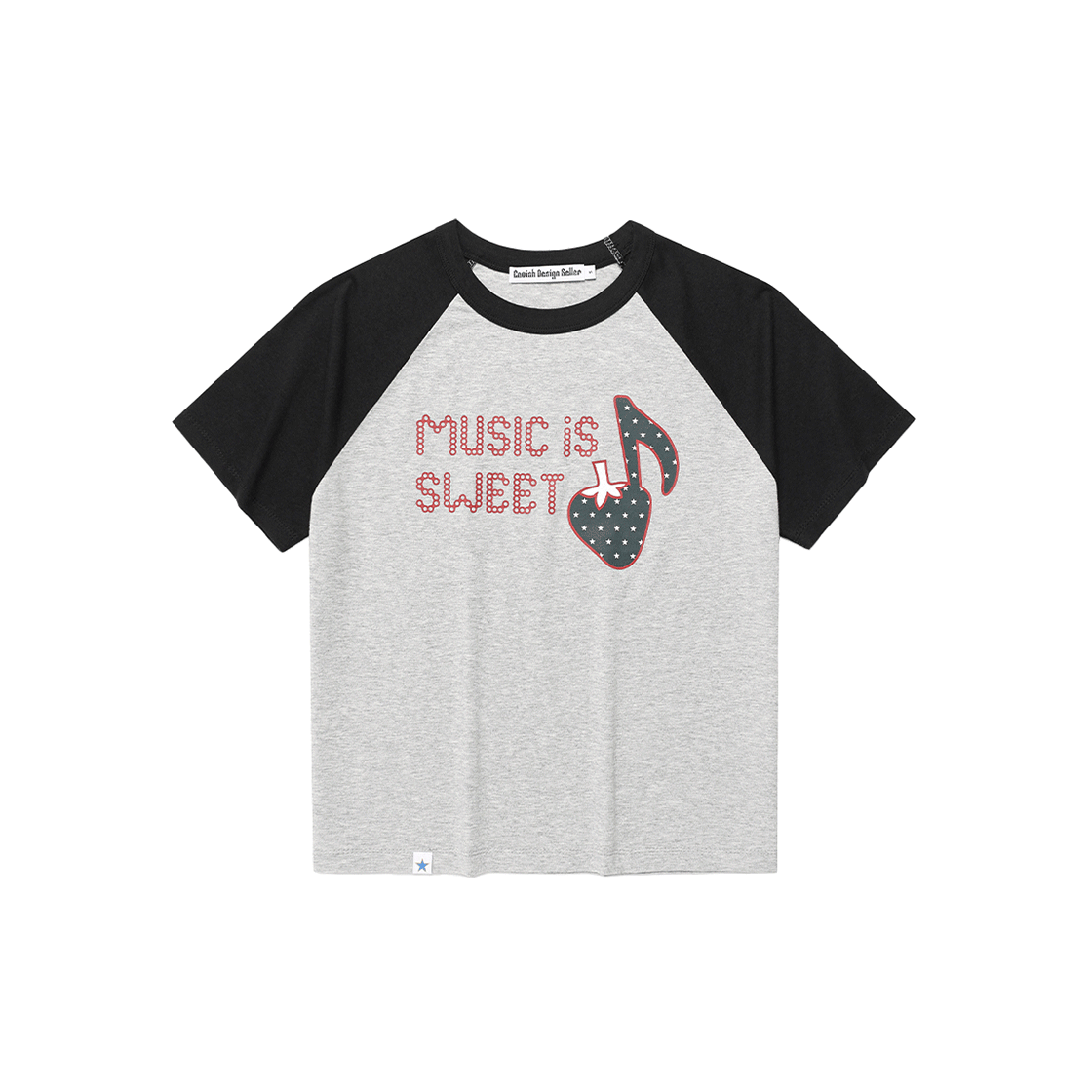 [트리플적립] 카비시 W 스트로베리 래글런 숏슬리브 티셔츠 그레이