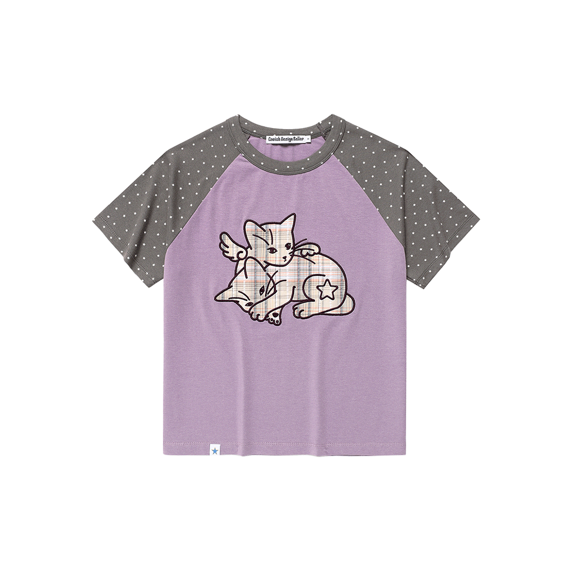 [트리플적립] 카비시 W 엔젤 캣츠 래글런 숏슬리브 티셔츠 퍼플