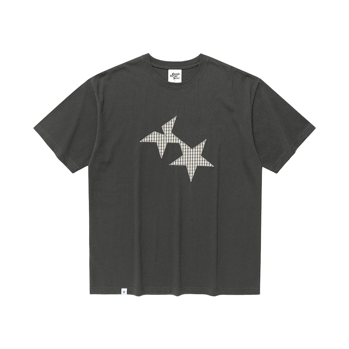 [트리플적립] 카비시 트윈 스타 체크 아플리케 숏슬리브 티셔츠 차콜