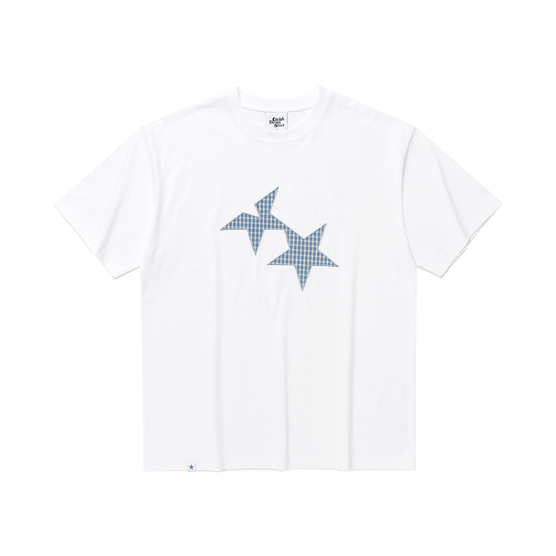 [트리플적립] 카비시 트윈 스타 체크 아플리케 숏슬리브 티셔츠 화이트