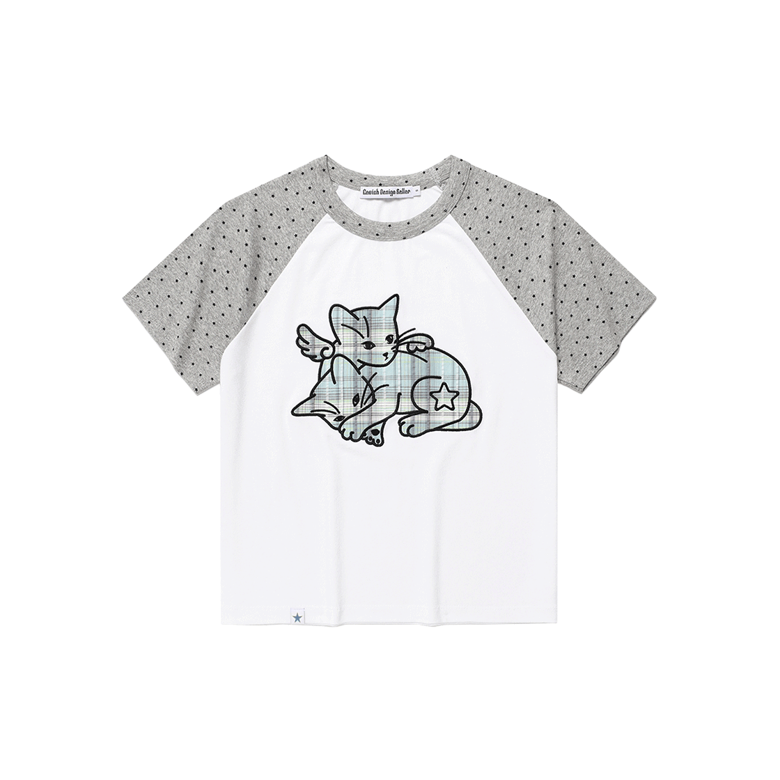 [트리플적립] 카비시 W 엔젤 캣츠 래글런 숏슬리브 티셔츠 화이트