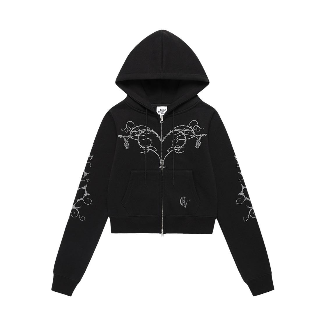[트리플적립] 카비시 W 스타 로고 크롭 후디 블랙