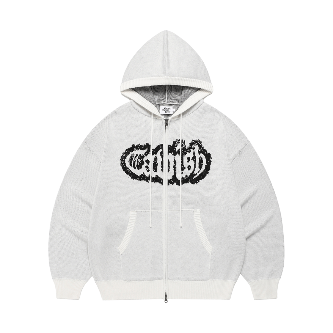 [트리플적립] 카비시 W 셀러 로고 니트 집업 후디 아이보리