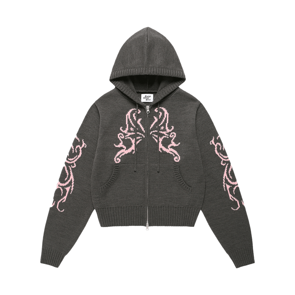 [트리플적립] 카비시 W 버터플라이 니트 집업 후디 차콜