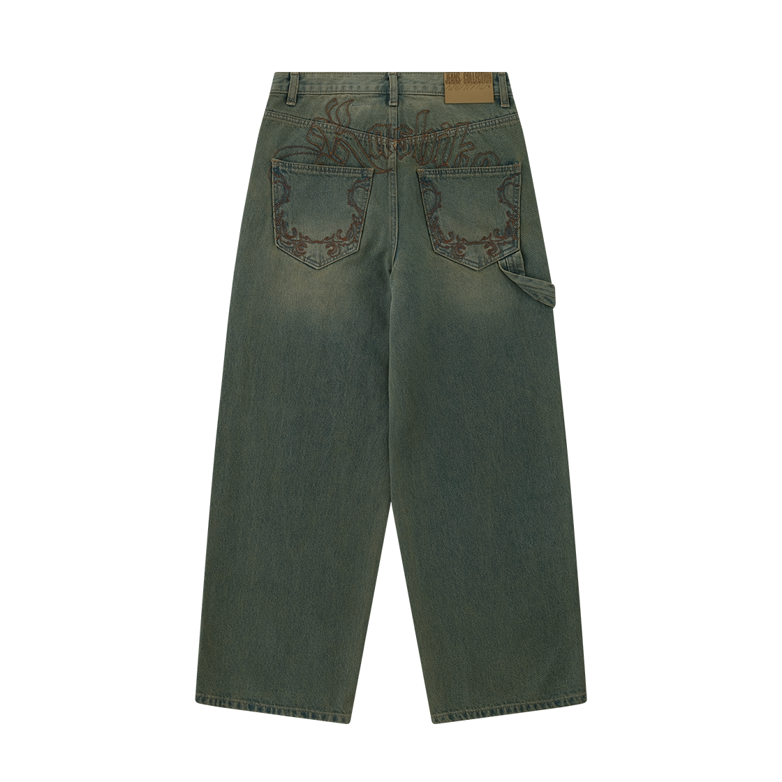 카시코 엠브로이드 워싱 데님 팬츠 베이지
