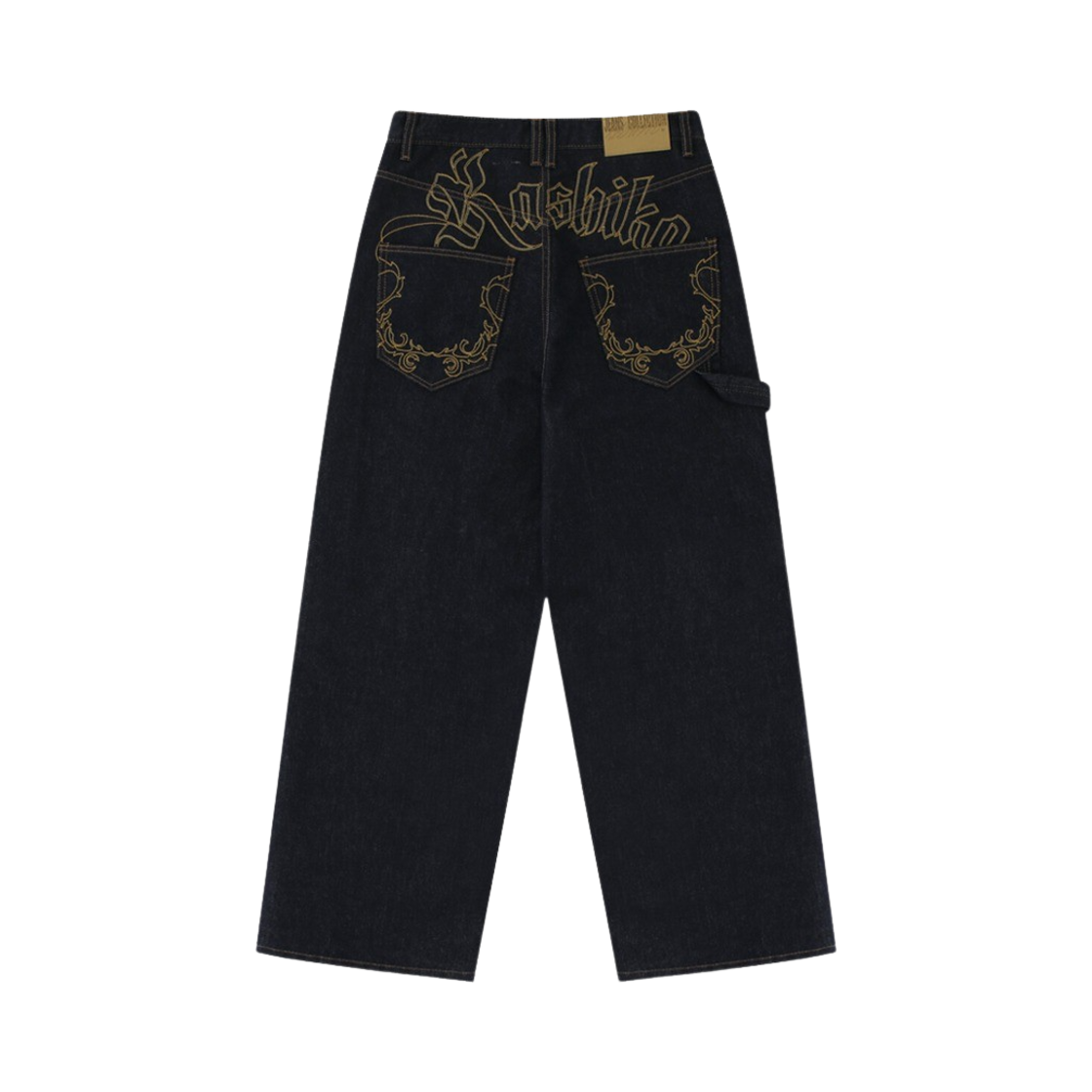 카시코 엠브로이드 워싱 데님 팬츠 블루