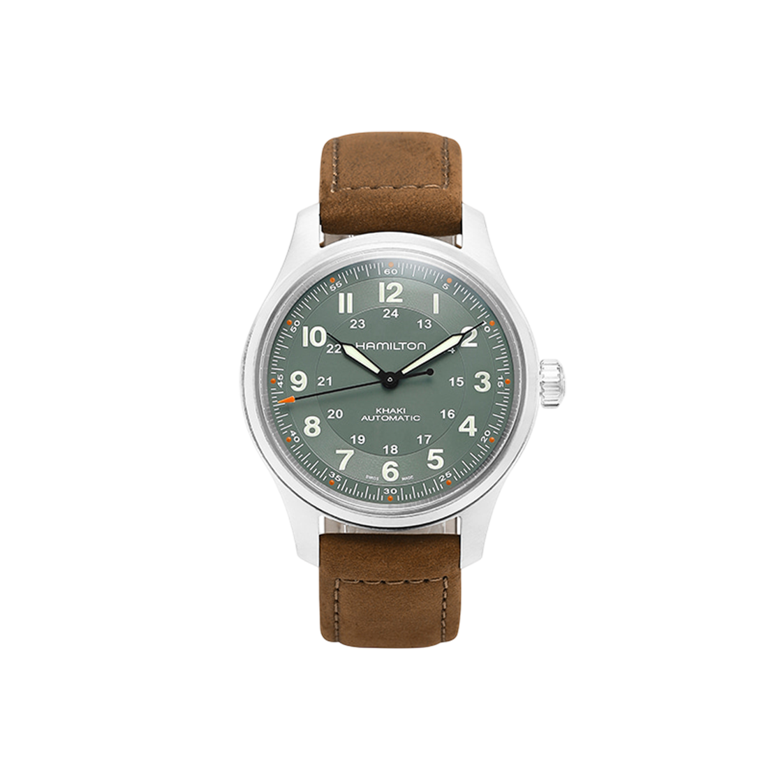 [13% 쿠폰] 해밀턴 카키 필드 티타늄 오토 42mm 소가죽 그린