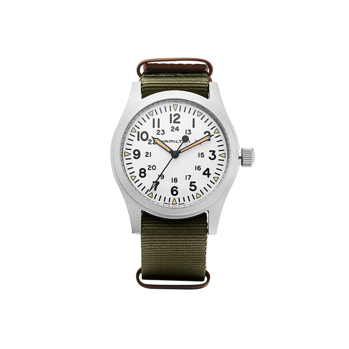 해밀턴 카키 필드 메카니컬 38mm 나토 스트랩 그린 화이트
