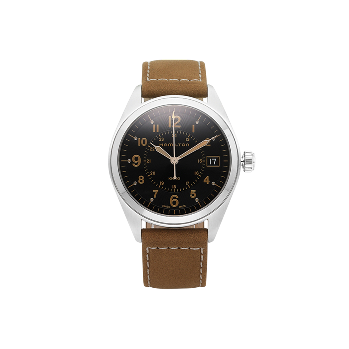 [13% 쿠폰] 해밀턴 카키 필드 쿼츠 스테인리스 스틸 카프 레더 블랙