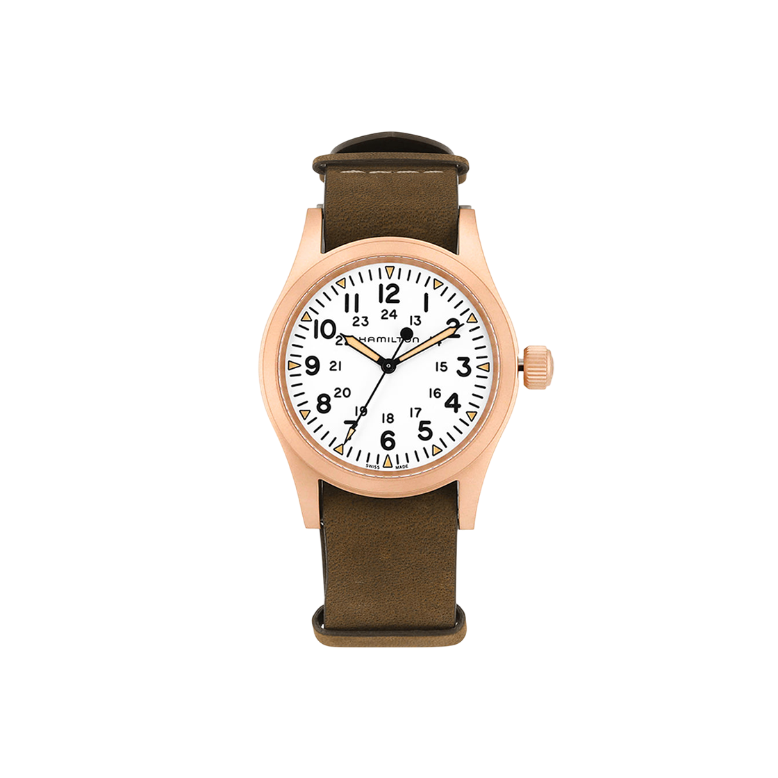 [13% 쿠폰] 해밀턴 카키 필드 메카니컬 브론즈 티타늄 38mm 카우 레더 화이트