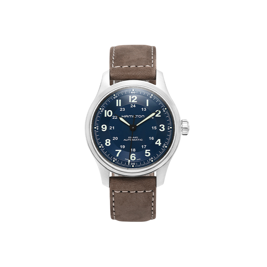 [13% 쿠폰] 해밀턴 카키 필드 티타늄 오토 42mm 소가죽 블루