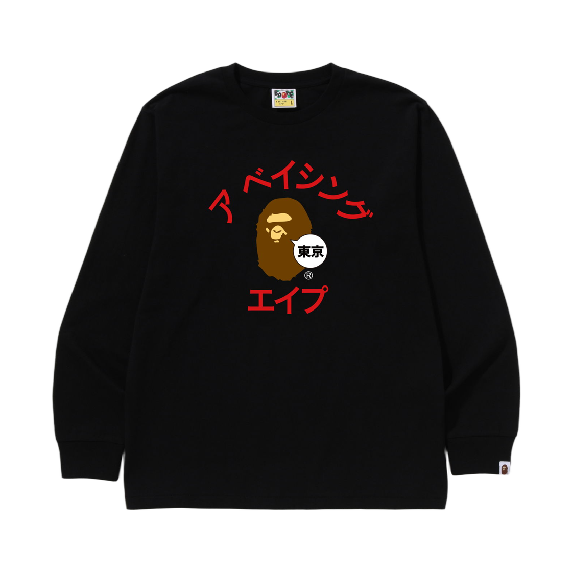 베이프 카타카나 컬리지 롱슬리브 티셔츠 블랙