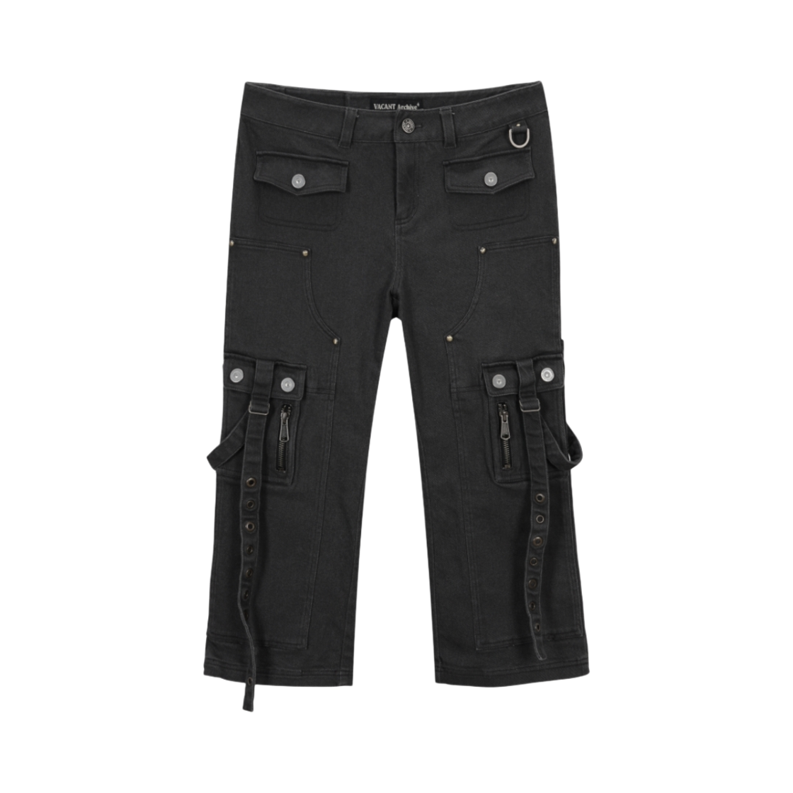 오호스 스트랩 트리밍 카프리 팬츠 차콜