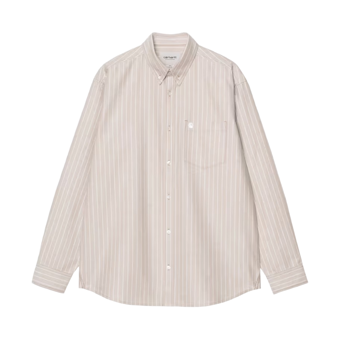 칼하트 WIP 롱슬리브 카셀 스트라이프 셔츠 린스드 화이트