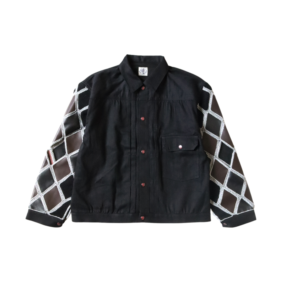 캐피탈 11.5온즈 블랙 x 블랙 데님 히피 크로셰 슬리브 퍼스트 자켓 블랙