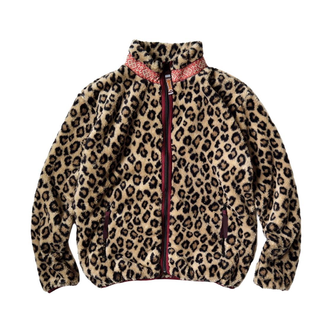 캐피탈 레오파드 패턴 플리스 집 블루종 브라운