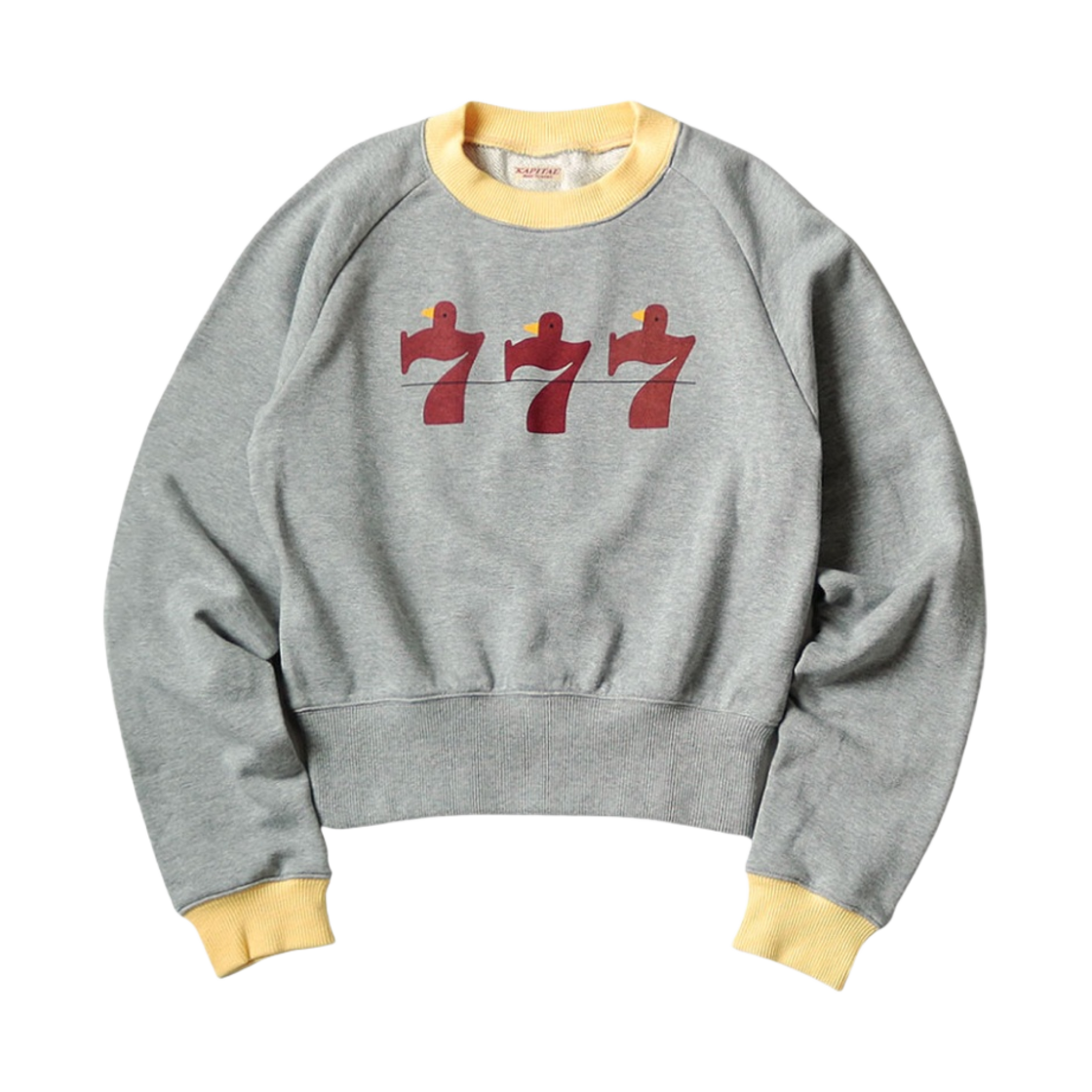 캐피탈 럭키 배터리 버드 30 플리스 링거 크루 스웨트셔츠 딩키 타입 그레이