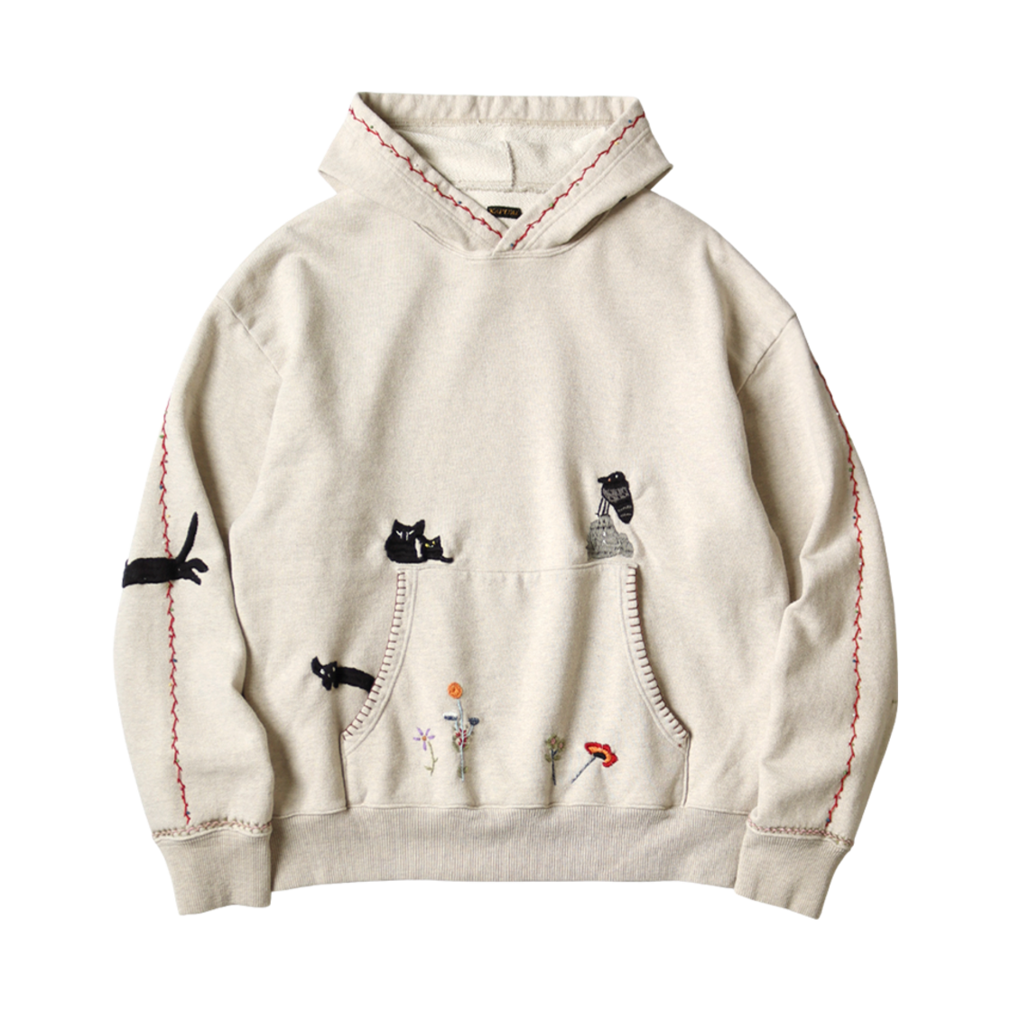 캐피탈 탑 플리스 후드 스웨트셔츠 크로우 앤 캣 자수 키나리