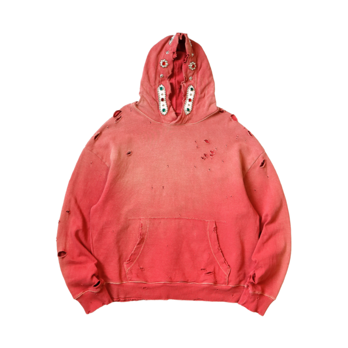 캐피탈 스릴러 데미지드 플리스 후드 스웨트셔츠 스터드 레드