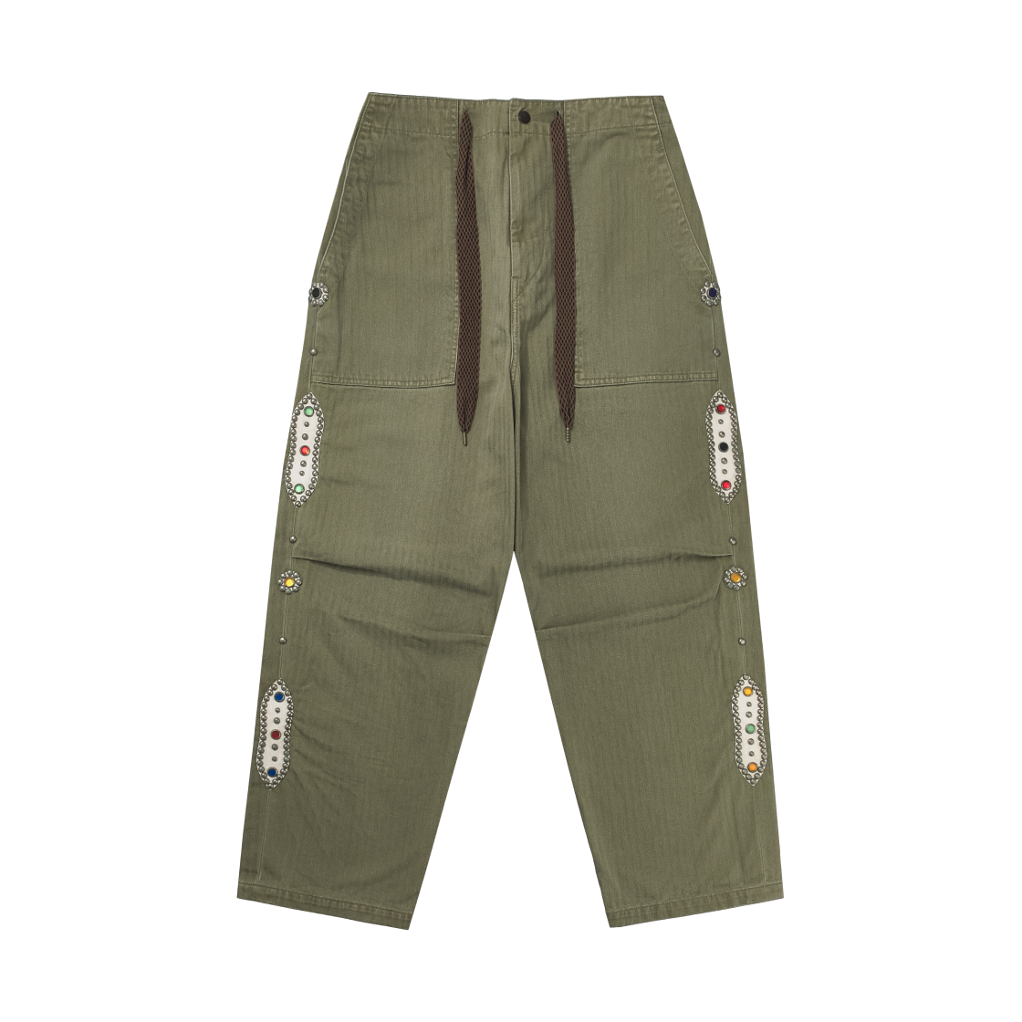 캐피탈 헤링본 점보 몽키 팬츠 팩토리 리페어 & 자수 카키