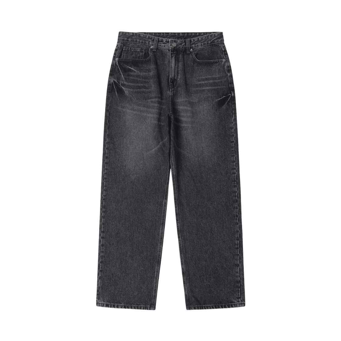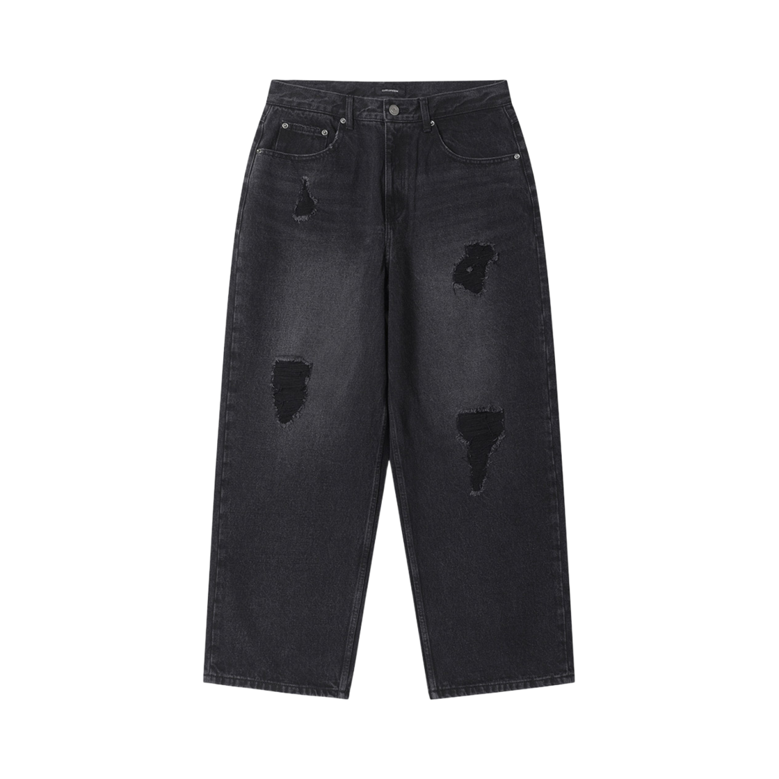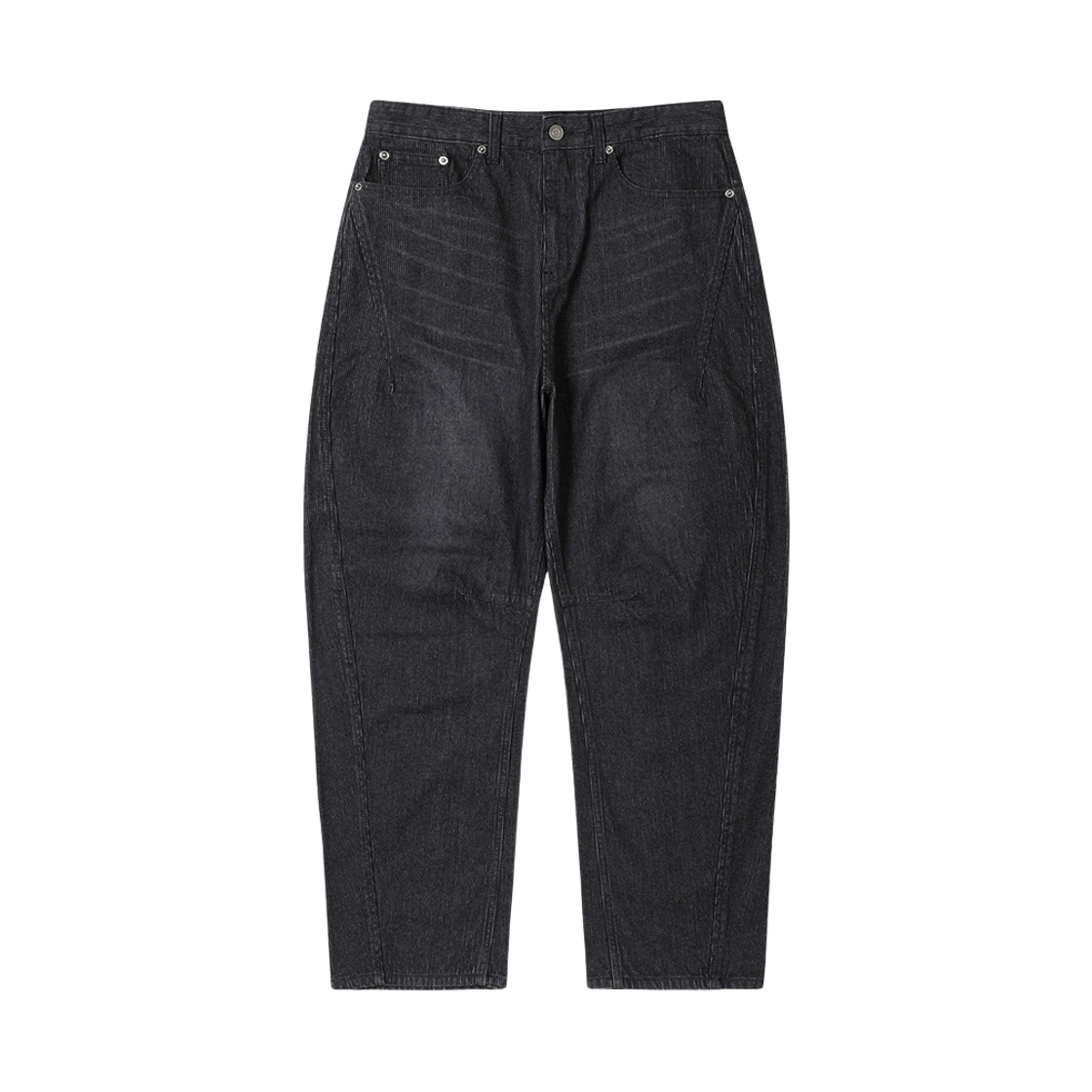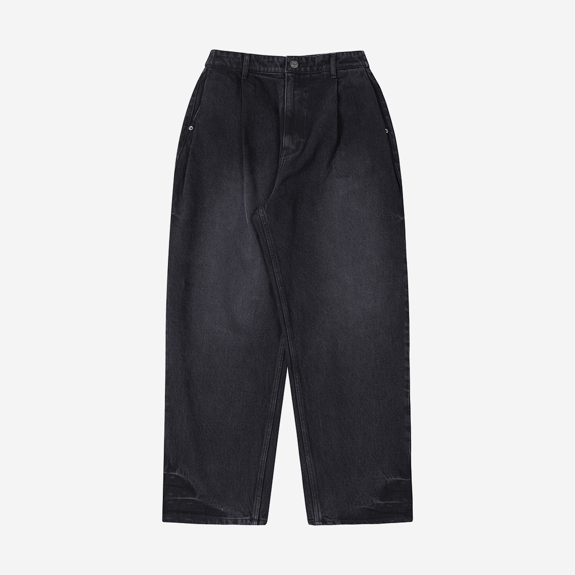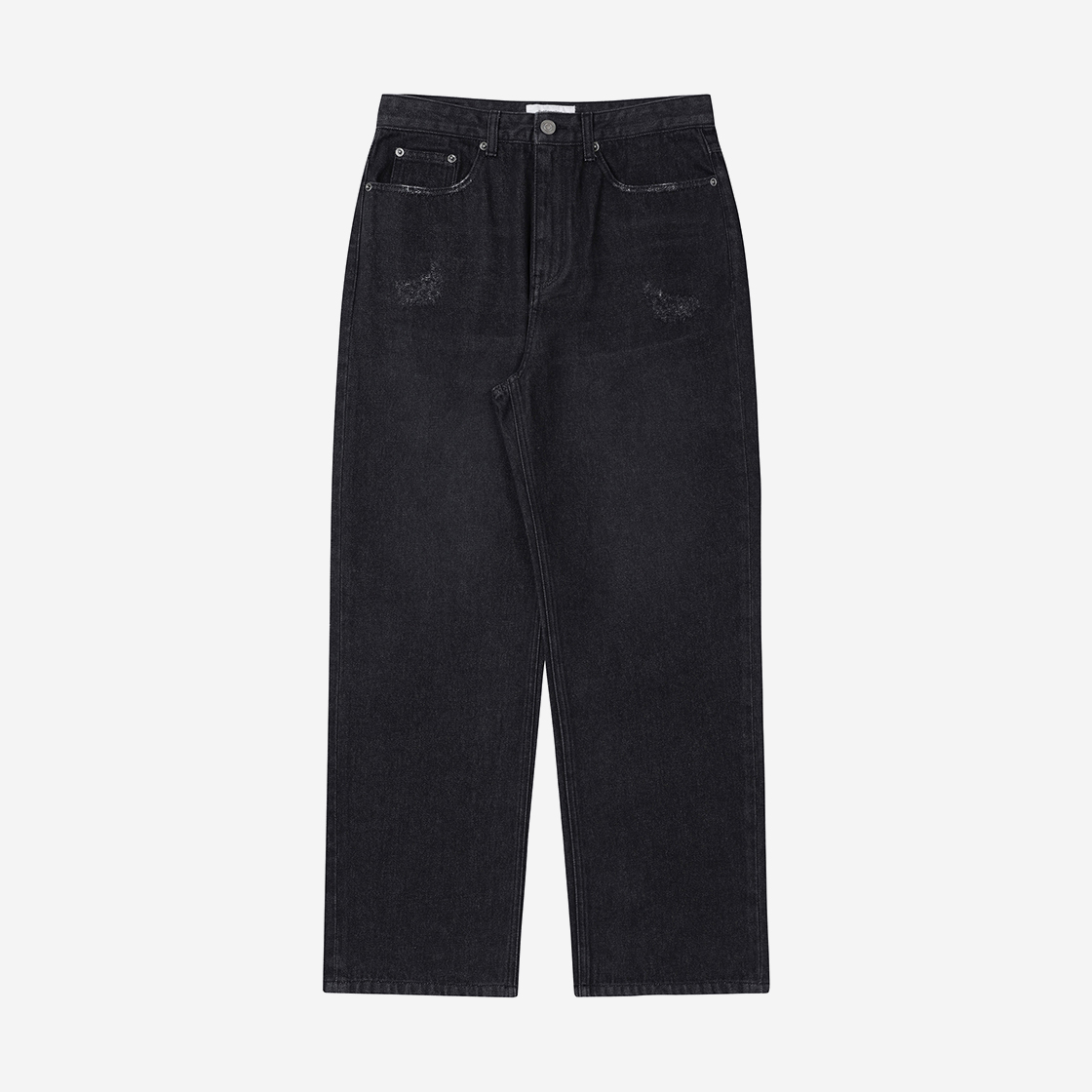 커스텀멜로우 와이드 핏 엠보 워시드 진 블랙
