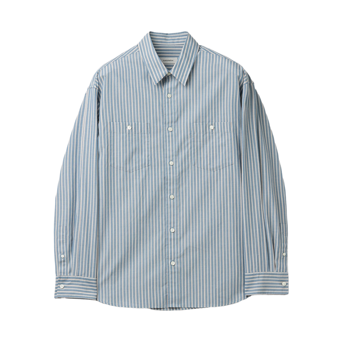 커스텀멜로우 오버사이즈 스트라이프 셔츠 블루