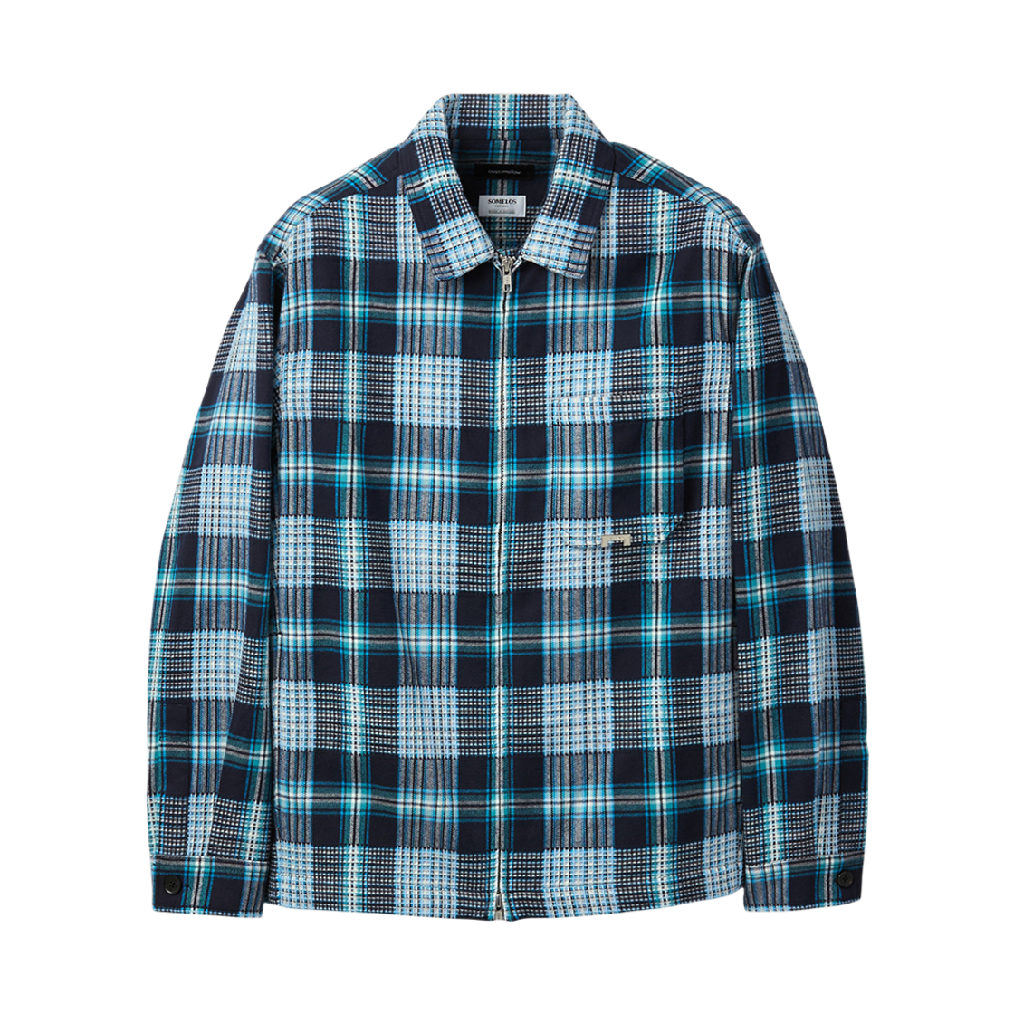 커스텀멜로우 체크 집업 아우터 셔츠 블루