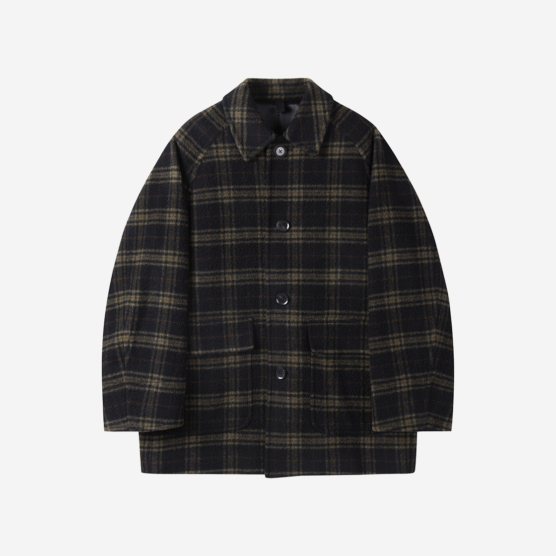 커스텀멜로우 카센티노 울 체크 숏 코트 브라운