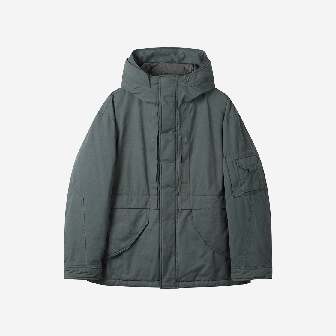 커스텀멜로우 미들 후드 다운 재킷 그레이