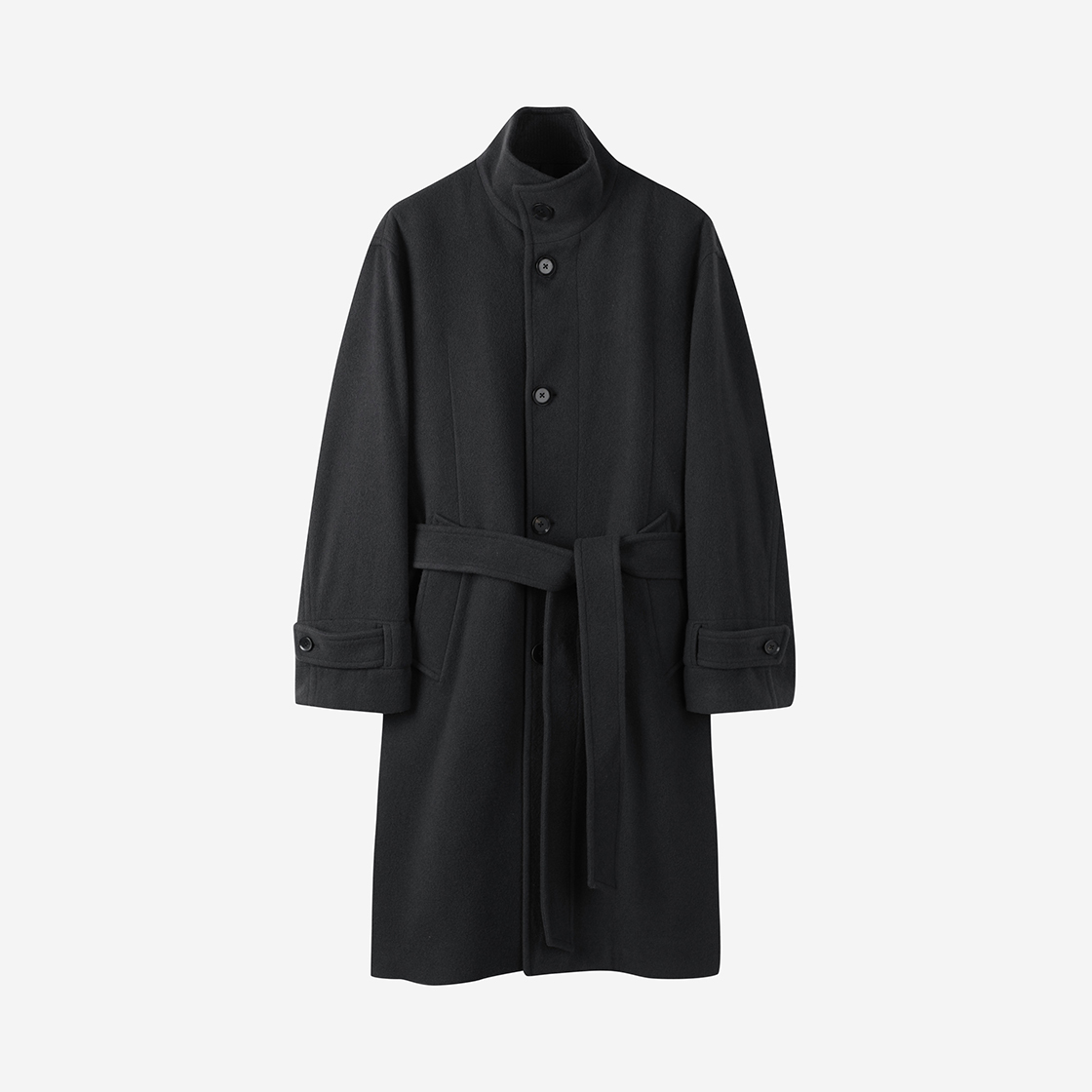 커스텀멜로우 밴드 칼라 벨티드 코트 다크 그레이