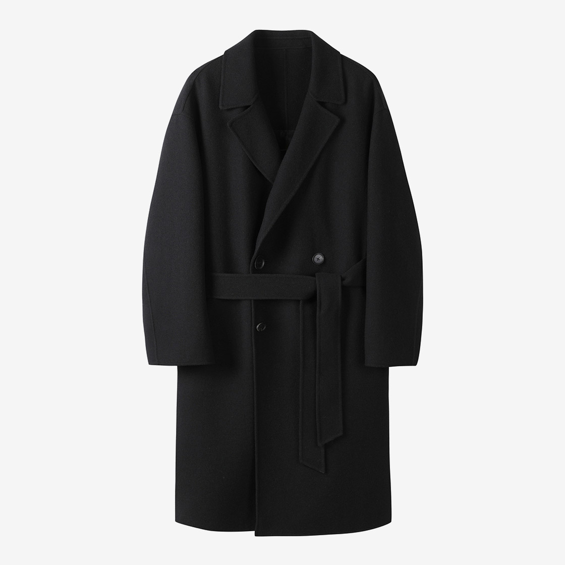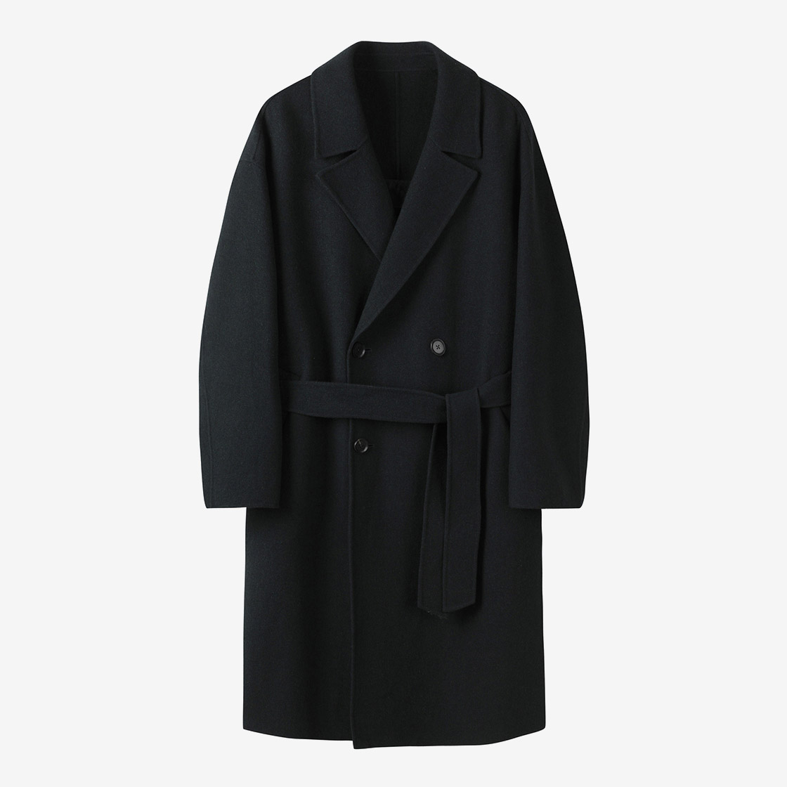 커스텀멜로우 울 더블 브레스티드 코트 블랙