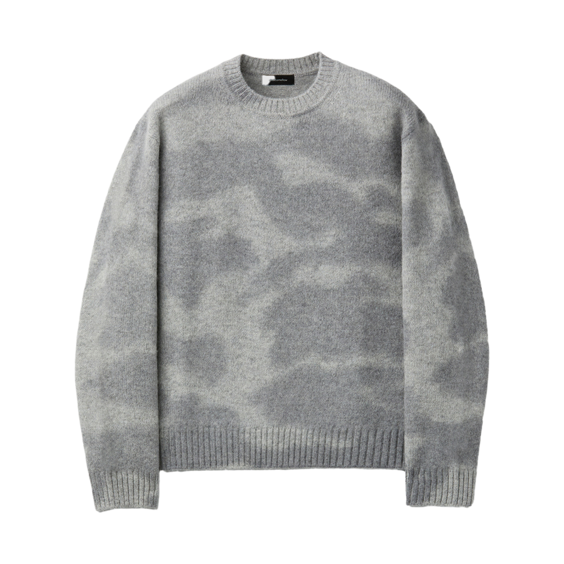 커스텀멜로우 스테인 프린트 라운드 넥 스웨터 그레이