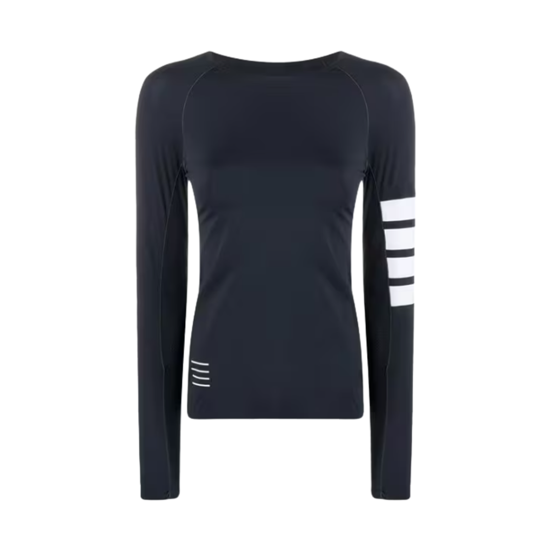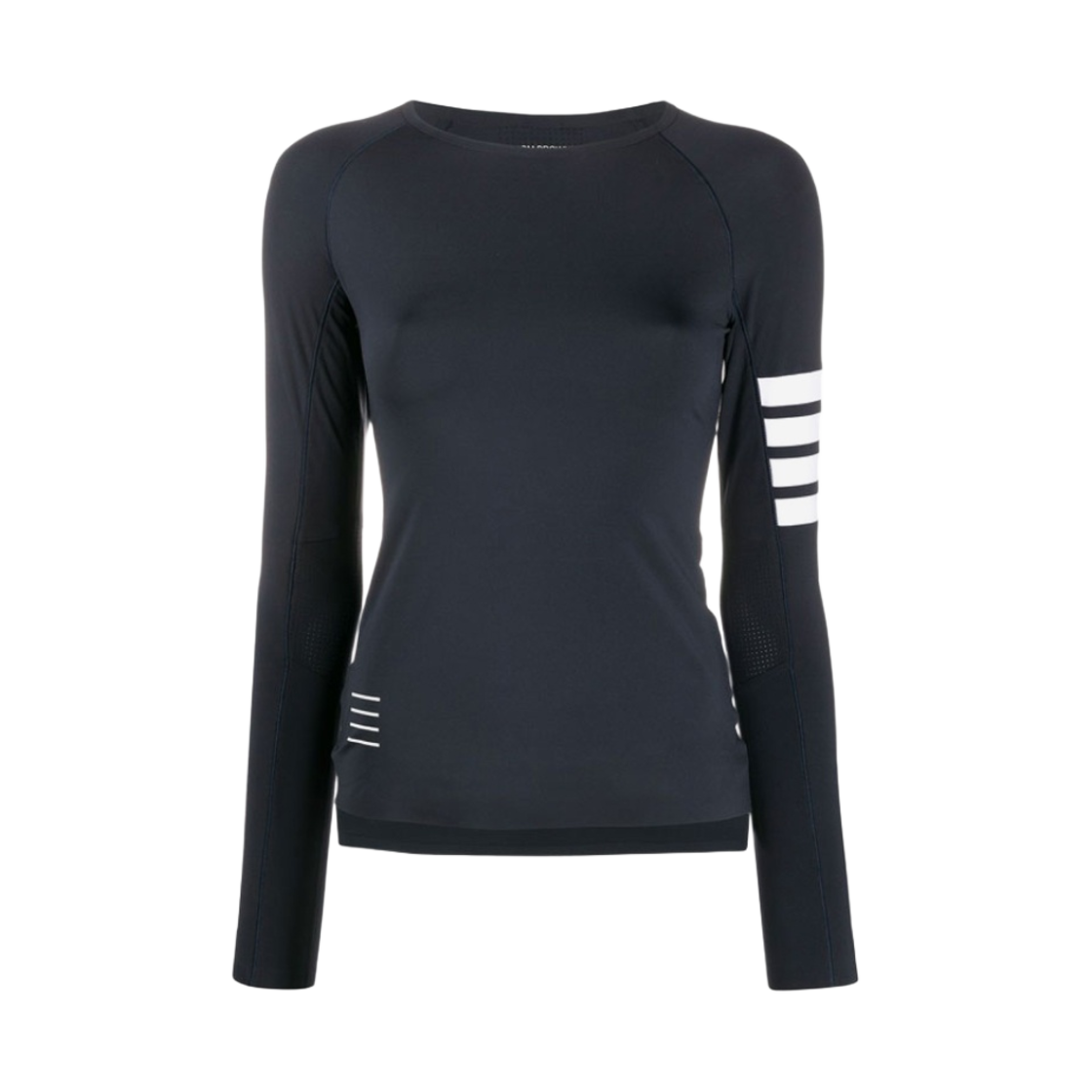 (W) 톰브라운 라이트웨이트 컴프레션 테크 인터락 사선 롱슬리브 티셔츠 네이비