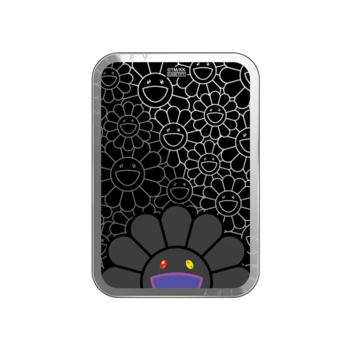 케이스티파이 x 무라카미 타카시 스마일 블랙 스내피 맥세이프 미러 카드홀더 스탠드 실버