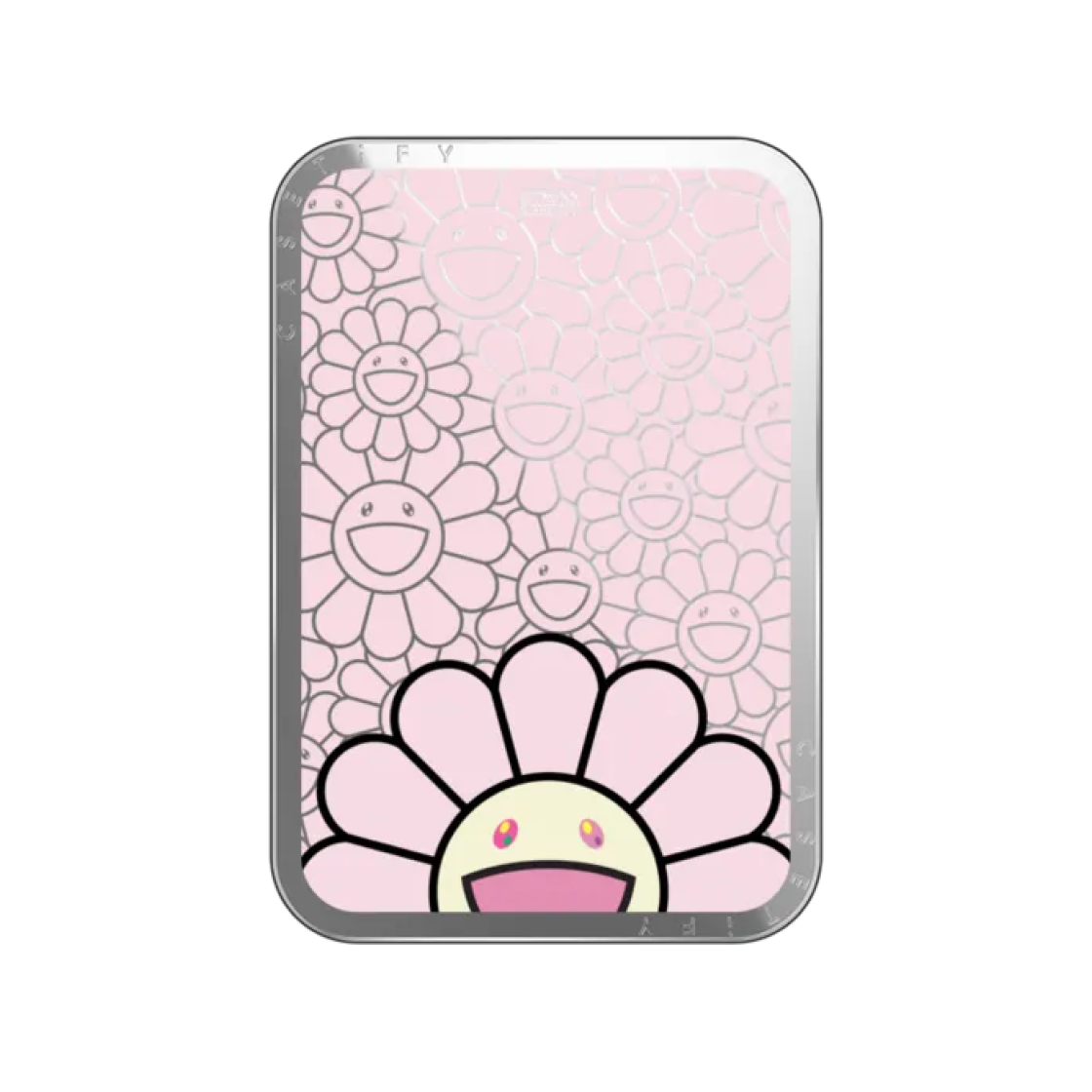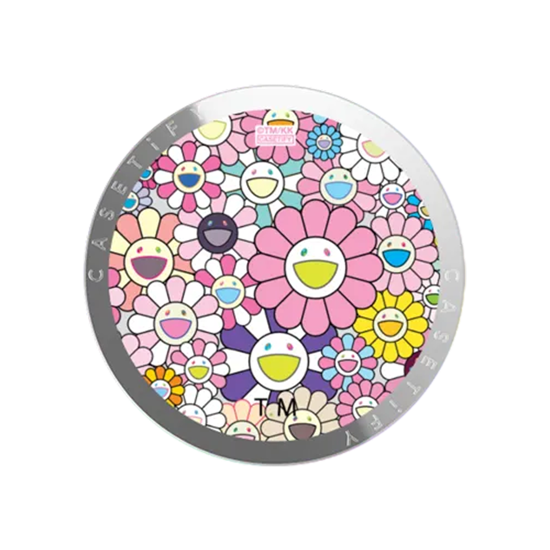 케이스티파이 x 무라카미 타카시 플라워 블룸 핑크 스내피 맥세이프 미러 카드홀더 스탠드 실버