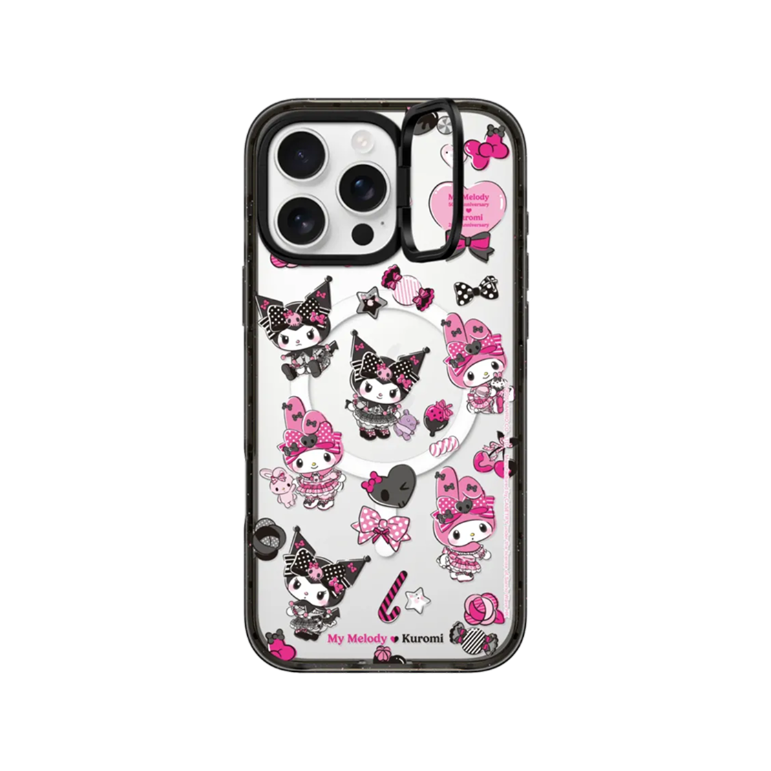 케이스티파이 x 산리오 마이 멜로디 & 쿠로미 아이폰 패턴 맥세이프 임팩트 링 스탠드 케이스 블랙