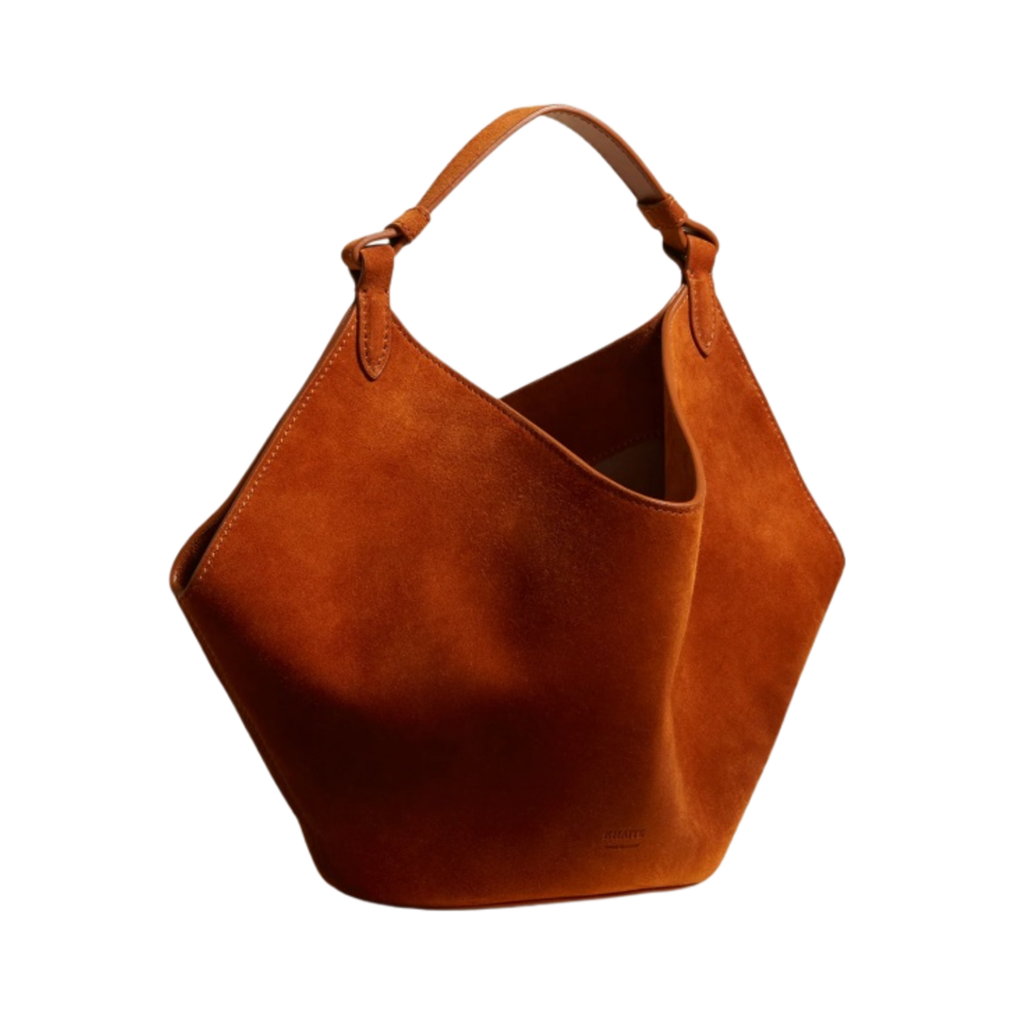 케이트 더 미니 로터스 백 카프스킨 스웨이드 카라멜